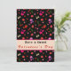 Alla hjärtans dag kort med hjärtan, jordgubbar och körsbär på en svart bakgrund och texten "Ha en söß Alla hjärtans dag"