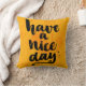 Ha en trevlig dag. Tillfredsställer danar den svart bläckcalligraphyen för vektorn för kort, tryck och socialmassmedia, design. Realitetcitationstecken som märker på gul grungebakgrund. | Bigstock® - all reserverad rättigheter.
