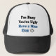 Jag den upptagna förmiddagen dig är ful har en trevlig dag. Populärt roligt ordstäv. I svart och marinblå text.