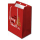 Den här solida röda presentsäcken har en contemporary som består av en guld färg rulla Julgran. Den djärva och manusskrivna texten lyder: Ha en god jul. Färgen för bakgrund och text kan anpassas. Mjölksäckar finns i stora, medelstora och små förpackningar.
