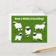 Detta roliga vykort är perfekt för alla som älskar får. Det har meddelandet "Ha en ULLIG Bra Dag!" men kan anpassas med din egen hälsning. Vykortet har illustrationer av Valais Blacknose får i vitt och svart mot en ljusgrön bakgrund.