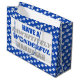 Vi presenterar vår beundransvärda Hanukkah-design med en charmerande gräns i vitt tass avtryck på blå bakgrund. Bygg upp hanukkahs festliga anda med denna design, som omger en ren vit bakgrund som visar den hjärtliga texten "Ha ett pawsivt underbart Hanukkah". Texten är skriven i blått och silver färg, där brev "o" i "underbart" lekfullt ersatts med en tassskrift. Den här utformningen fångar Hanukkahs glädje och firande med en vänligt sinnad tvist. Kombinationen av blå bakgrund, vit tass avtryck och silver framhäver en känsla av värme och tillsammans, perfekt för att hedra minnet av festivalen i Ljus.