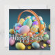 Denna unika påskhälsningskort har en färgglad korg som svämmar över av ägg och söta godsaker. Vänligen ändra texten för att göra detta kort personligt och unikt.