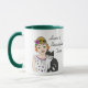 Cute whimsical hand plockade folk art stil tjej och svart och vitt kattkaffe mugg.
