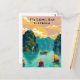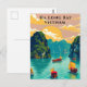 upplevelsen av en båt resa genom Ha Long Bay, Vietnam med detta scenvykort! Med traditionella båtar som seglar bland de bedövande kalkstenskarsterna och emerald vatten, fångar den här bilden kärnan i UNESCO:s världsarv. Perfekt för att skicka resande hälsning och minnen.
