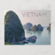 Skicka detta vackra vykort till dina nära och kära med traditionella trä turistbåtar förtöjda vid foten av en svindlande kalkstensformation i Ha Long Bays smaragdgröna vatten,