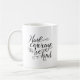 Söt skripttypografi av ordspråket Ha mod och Var vänliga i svart text.