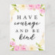 Elegant och trendig poster med bra livsoffert och blommigt av vattenfärg. I texten står det "ha mod och vara vänlig". De handmålade blommorna är rosa camelli och vit magnolia. Snygg och motiverande design för ditt rum!