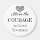 Inspirationellt citat: "Ha mod till kärlek själv". Svartvit motiveringsbekräftelse.