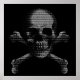 En binär skalle och korsben, underbar för hackare och programmerare! Vid första anblicken ser det ut som en typisk skalle och korsben i pirat, men se närmare ut. Den är gjord av binärkod med tips om att inte tala i lugn och ro begravt i koden.