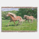 Haflinger-sto med friskfol som springer tillsammans över en betesmark i ett vackert landskap. Ett foto från Katho Menden, en blond flaxen-kastanjeträd, även kallad hafies eller avelignese. Den här mysiga proffsfilten är en presentidé för hästälskare http://www.zazzle.com/kathom_photo - Om du ser en design som inte finns på din önskade produkt, tveka inte att kontakta mig genom min butik och jag skapar produkten åt dig.