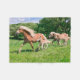 Haflinger-sto med friskfol som springer tillsammans över en betesmark i ett vackert landskap. Ett foto från Katho Menden, en blond flaxen-kastanjeträd, även kallad hafies eller avelignese. Den här lilla bekväma filten är en presentidé för hästälskare http://www.zazzle.com/kathom_photo - Om du ser en design som inte finns på din önskade produkt, tveka inte att kontakta mig genom min butik och jag skapar produkten åt dig.