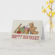 Raddaverktyg för avklopp och häftningar, med ett gulligt teddybear bevaka dem, under "grattis på födelsedagen" i kor syr stilsorten. Ett perfekt födelsedagkort för nålarbetare! Skräddarsy insidan med ditt personliga meddelande.