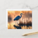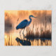Häger i en dimmig våtmark vid soluppgång vykort