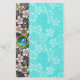 HAIKU/BLACK WHITE VÅR BLOMMOR BLUE GEM MONOGRAM BREVPAPPER