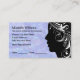 Den unika skönhetsmallen för visitkort i en elegant, inklusive mode hårmodellsgrafik med blommigt i bakgrunden med textlayout, gör det enkelt att anpassa onlinen för en hårfrisör, en manicurist eller ett skönhets- och mode-företag.