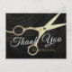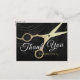 Hair Salon / Hairstylist / Hairdresser / Beauty Salon Tack Postcard Templates - Modern Faux Guld Sissors on Elegant Black and White Hair Mönster Background.