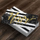Hair Stylist Guld Script Modern Black & White Rand Black Blommigt Affärskorts.