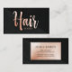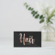Ett modernt, snyggt hårstilistigt affärskort med modernt stil-borsttypografi i faux ro guld-folie på en trendig och elegant mörk svart, tryckt papper bakgrund. Perfekt för hårstilister, hårstilistorna, hårfrisörer, salonger m.m.