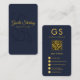 Hair Stylist Monogram Navy Blue Guld QR-kod Visitkort