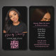 Ett elegant och modernt affärskort designat för professionellens hårstilister. Den här fetstilta designen har en lyxsvart bakgrund med rosa av chic och innehåller ett rektangulärt hårfoto för snyggten, utrymme för ditt namn och dina tjänster samt en skannerbar QR-kod för omedelbar bokning eller social-medieåtkomst. Perfekt för professioneller som specialiserar sig på press i silke, utfall, filnamnstillägg, möhippa och färg-behandlingar. Det här kortet blandar elegans med funktioner som skapar ett minnesvärt intryck.