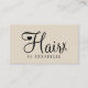 Trendy modern elegant hair stylist / hairdresser business card with trendy chic handwritten script typography in simple minimalist beige and black. Suitable for hairstyle salon, beauty salon, hairdresser, professional hairstylist. +++++++++++++++++++++ Perfect choice for an elegant stylish sophisticated professional look. ++++++++++++++ Easy to personalize on both sides with your business info, name, title, contact details, social media, and scanable digital QR code!