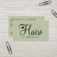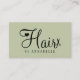 Trendy modern elegant hair stylist / hairdresser business card with trendy chic handwritten script typography in simple minimalist sage green and black. Suitable for hairstyle salon, beauty salon, hairdresser, professional hairstylist. +++++++++++++++++++++ Perfect choice for an elegant stylish sophisticated professional look. ++++++++++++++ Easy to personalize on both sides with your business info, name, title, contact details, social media, and scanable digital QR code!