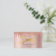 En modern utformning med ro guld som bakgrund färg, som matchar ro guld faux glitter och guld. Ett minimalistiskt affärskort för personlig för hårstilister och hårfrisörer. Ett enkelt och professionell sätt att presentera ditt företag. Anpassa dina uppgifter för att skapa ditt eget unika affärskort.