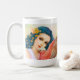 En haired älva och henne för blått följefågel, en galahkakadua. Denna härliga målning med mjukt borstar av ska färg är en perfekt gåva för folk som lika fantasitecken och fåglar, naturligtvis. Välj någon stil och färg av muggar som du gillar bäst!