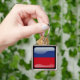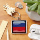 Haitis flagga fyrkantig silverfärgad nyckelring