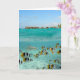 Hälsningkort med en haj som utom fara jagar vatten för blått för fjärilsfisk av lagunen av Bora Bora, en ö av den Tahiti skärgården franska Polynesia. Ovanför vatten kan du se overwaterbungalower.
