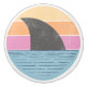 Hajillustration i Retro stil vid solnedgången i vågigt hav för alla som tycker om hajar och havs- och havslivet