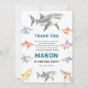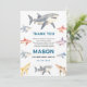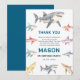 Tacka i sanning med en stor stänk! Detta söta haj 5-årsdag tack-kort är det perfekta sättet att dela uppskattning med gästerna efter er oceaniska äventyrsfest. Med ett sött haj- och undervattens tema är det roligt, vänligt och perfekt för små havsforskare. Anpassa ditt meddelande och skicka stora leenden hem. Bra för oceanfester, haj-älskande barn och att fylla fem på ett häftigt sätt!