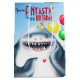 Rodnande haj som bär kalashatt med ballonger.
