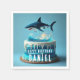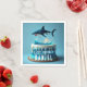 Pappra blöjor från födelsedagskalas med en haj-/kägeltårta med "Grattis på födelsedagen", fetstil med versaler. Anpassa den genom att lägga till ditt namn.