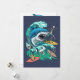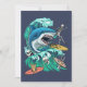 Shark wave-kortdesign. Matar frenesi medan man rider på vågar. Hajattack; retro-estetik.