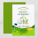 Fira din pojke och flicka med golftema födelsedagsfest inbjudan.