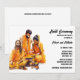 En vacker vattenfärgsgrafik med en indisk brud och groom med traditionella bröllop-konfektioner som krymper bakom en stor kruka fylld med gurkkryddor. Bredvid dem finns en indiansk man med långt hår sitta kor som har benats på marken och som håller i handen det gurkmesiska pulvret. Personerna ställs in mot en vit bakgrund som innehåller svarta textmallar för anpassningsbarnas ordalydelse. Den här eleganten, trendiget och den moderna designen har ytterligare en mall på baksidan för ytterligare information som du kanske vill lägga till. Om det inte är nödvändigt, stryk helt enkelt ordalydelsen. Fira denna ceremoni före bröllop med vänner och familj för att se till att bruden och brudgummen får skydd, välsignelser och rening. Den här inbjudan är perfekt för alla Sangeet-, Hindi-, Hena-, Mehndi- eller Mhindi-ceremonier.