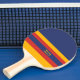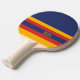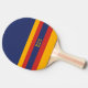 Three-color design in half solid and then with stripes. Horizontal lines in three colors for your table tennis racket and Ping Pong paddle. Add your name or text. This variant is the retro solid blue, yellow and red version.