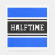 Den här sportetiska, atletiska designen har fet HALFTIME-text inuti ett markerat svart rand med dubbla vita ränder av tävla mot ljusblå ränder av yttre kant-bakgrund. Texten i den här designen kan vara personlig.