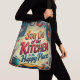 Den här roliga och livfulla designen är perfekt för älskare i köket, med den djärva och lekande sloganen "Håll dig borta från köket, Det är My Lycklig Ställe" i ett dynamiskt och färgstarkt teckensnitt. Den livliga bakgrunden visar en vismisk köksscen med charm. En nybakad paj ligger stolt på en spis, omgiven av härlig inslag i köket, som en visk, träskedar, en tealsåcefan, färska tomater och en mängd dekorativa accenter. De ovan nämnda tealhyllorna förvaras tillsammans med burk, skål och bockeri, medan en vacker orange katt sitter på en hylla, vilket ger en aning spelsamhet. Frukter som jordgubbar, orangar och spridda mousserande accenter skapar en känsla av energi och värme som kompletterar den vibrerande typografin perfekt. Den här designen utstrålar en mysigt och inbjudande atmosfär, skapar den som ett idealiskt val för alla som har glädje i köket och matlagningen. Perfekt för att ge någon medhjälpare status, denna påse är ett måste för livsmedel, bagare eller alla som värdesätter sin kulinariska fristad.