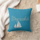 "Håll dig undan" text i rep med segelbåt. Nautisk segelbåt och fiskmås gick i mönster på turkos på baksidan. Bakgrunden till färg kan ändras.