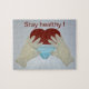 Håll dig frisk med rött hjärta, skyddsmask och gummihandskar