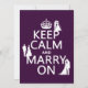 Det här är den klassiska krigsaffischen "Keep Calm and Carry On" omformulerad till "Keep Calm and Marry On". Jag har behållit den traditionella kronan högst upp och lagt till siluetter av brudar och brudgum-mar som står på bokstäverna. Det är en vacker och stilren design, med lite nostalgi. Blir vackra vykort och inbjudningar eller presenter till någons speciella dag. (design för homosexuella par finns också tillgängliga i min butik.)