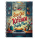 Ge dina anteckningar en personlig touch med den här livfulla och fantasifulla kökstematiska anteckningsboken. Med fet, lekfull bokstavsstil som deklarerar "Håll dig utanför köket - Det är min lyckliga plats!" och omgiven av en glad explosion av stjärnor, konfetti och färgglada accenter, är den här designen perfekt för alla som älskar sitt kök. Den charmiga illustrationen inkluderar en gyllene paj, en gryta, livfulla vimplar och roliga köksdekorationer, vilket skapar en livlig och inbjudande atmosfär. Perfekt för att skriva ner recept, dagliga tankar eller kreativa idéer, är den här anteckningsboken en måste-ha för alla köksälskare eller matentusiaster.