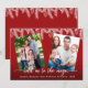 Charmig, elegant julkort för familjen! Det har vita tallgrenar på en röd bakgrund, två bilder och modern kalligrafi "hålla fast vid magin" ovanpå ett överlägg så att det syns på varje foto, oavsett färger. Använd verktyget Anpassa för att lägga till din information. Fler idéer finns i min Charm julkollektion.