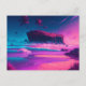 Rosa, blått och lila vinkara havets tropiska ö med handflatan träd fantasydigital konst.