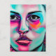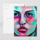 Säg hej till en vän eller familjemedlem med det här söt konstkortet. Kvinnokonst i ansikte skapade konst i Urban. Nära ansikte. Teal, vit, rosa och svart färg.