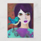 Säg "hej" till en vän med detta söta abstrakta konstkort med en flicka och hennes fågel i teal och lila abstrakt AI-konst.