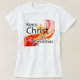 Håll Kristus i jul, nätt rött, vit, virvlar runt orangen och den gula diagonalen design med röda prydnadar och dekorativa löv. Fira den religiösa helgdag med denna stilfulla kristna t-skjorta om att fira det riktiga menande av jul, den Jesus Kristus.
